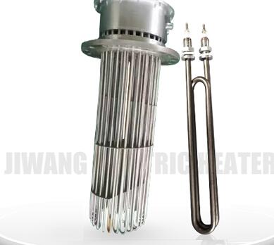 2、硝鹽溶液溶液、油、水(shuǐ)加熱:將彎曲成型的管狀電熱元件焊接在(zài)法蘭上構成。電熱管用於(yú)敞開式、封閉式的溶液箱和循環係統中(zhōng)加熱用。